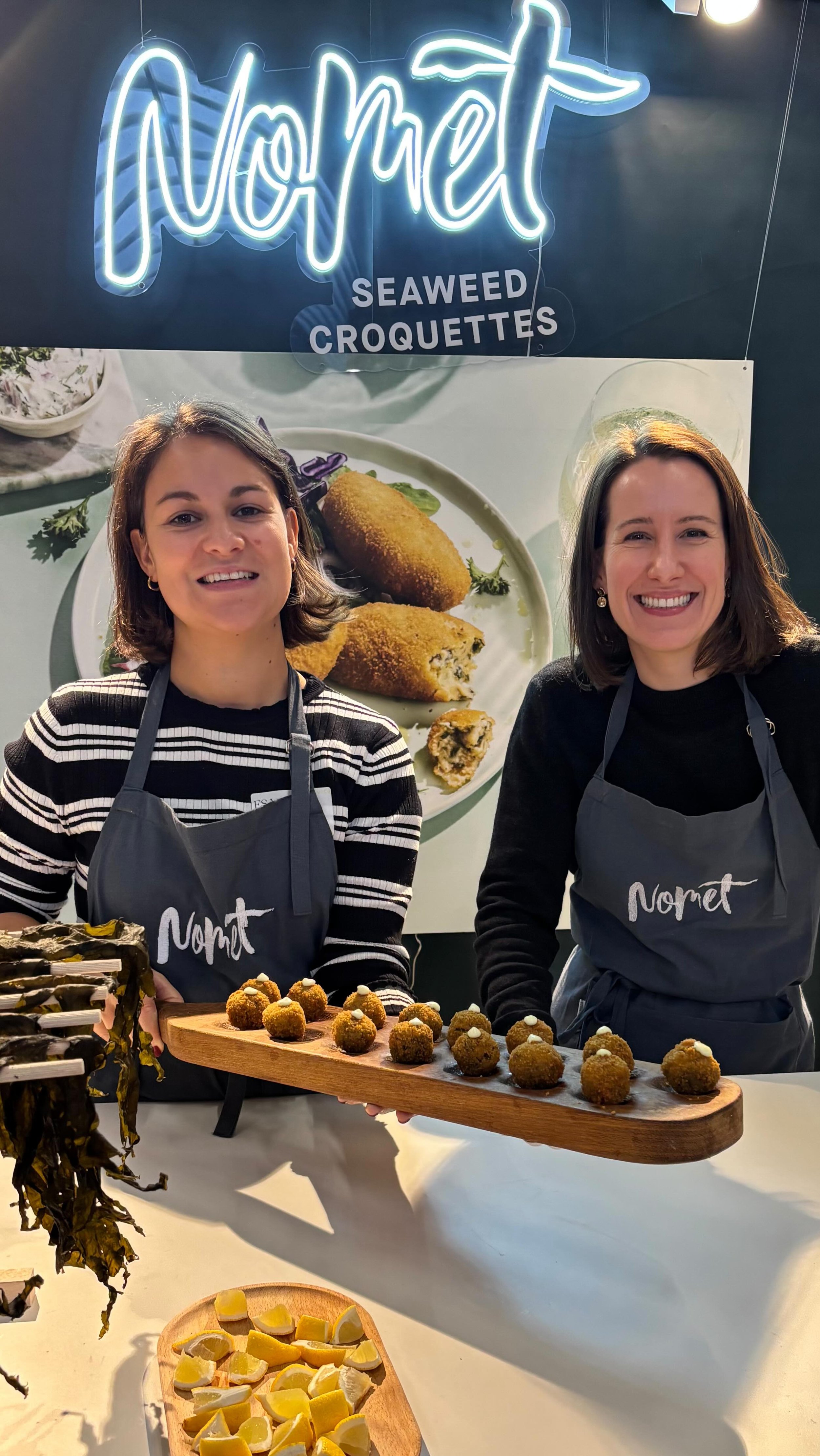 Kort daarna bundelde Mona haar krachten met An-Sofie, die net terugkeerde na tien jaar in Shanghai, waar zeewier dagelijks op het menu staat. Samen ontwikkelden ze de eerste Nomet zeewierkroketten – krokant vanbuiten, smeuïg vanbinnen, met echte stukjes zeewier die je ziet én proeft.